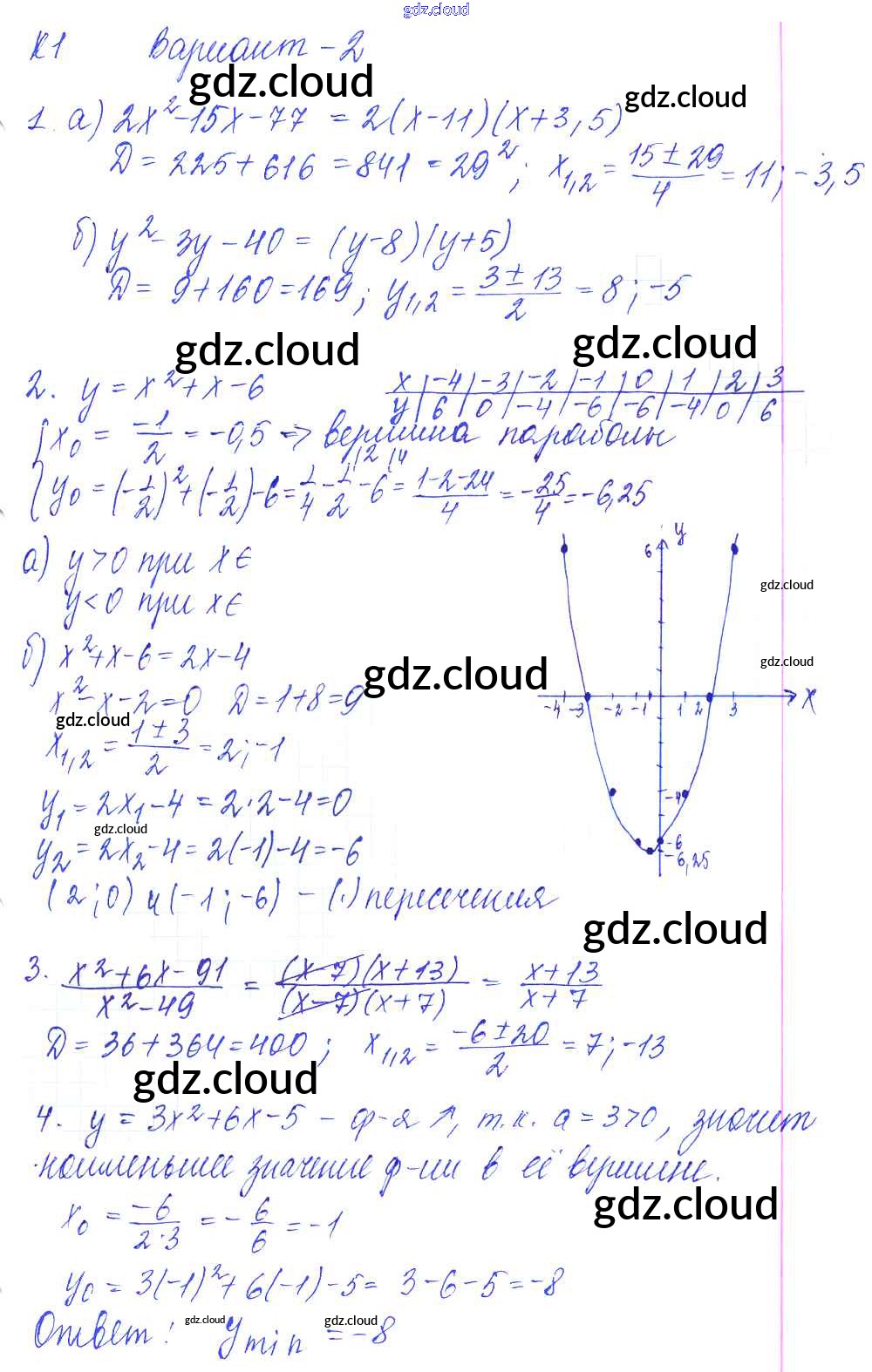 К-1. Квадратичная функция Ответы к Контрольным работам по Алгебре 9 класс Контрольные и самостоятельные работы Журавлев УМК Экзамен