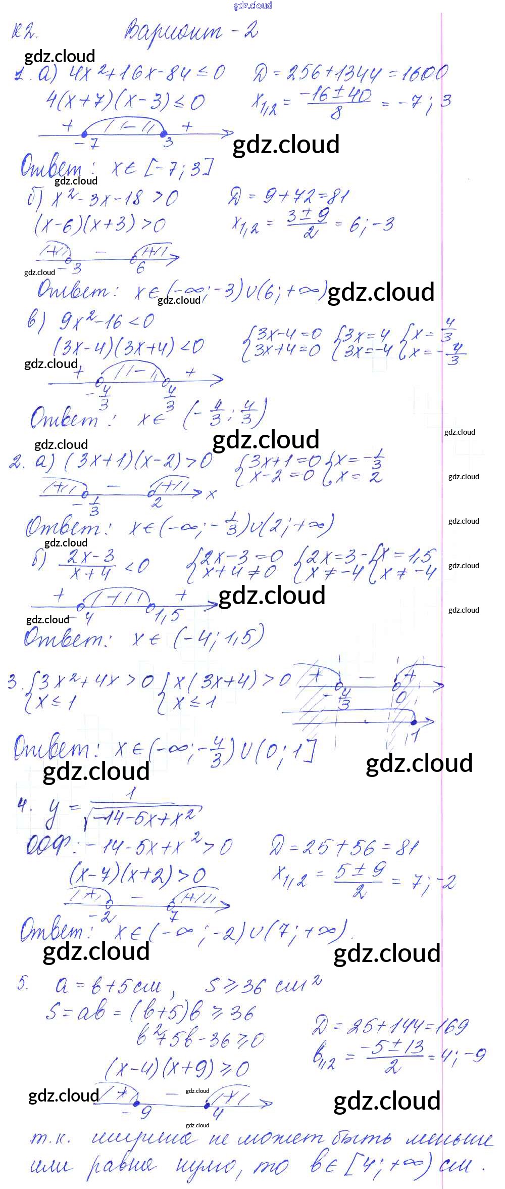 К-2. Решение неравенств Ответы к Контрольным работам по Алгебре 9 класс Контрольные и самостоятельные работы Журавлев УМК Экзамен