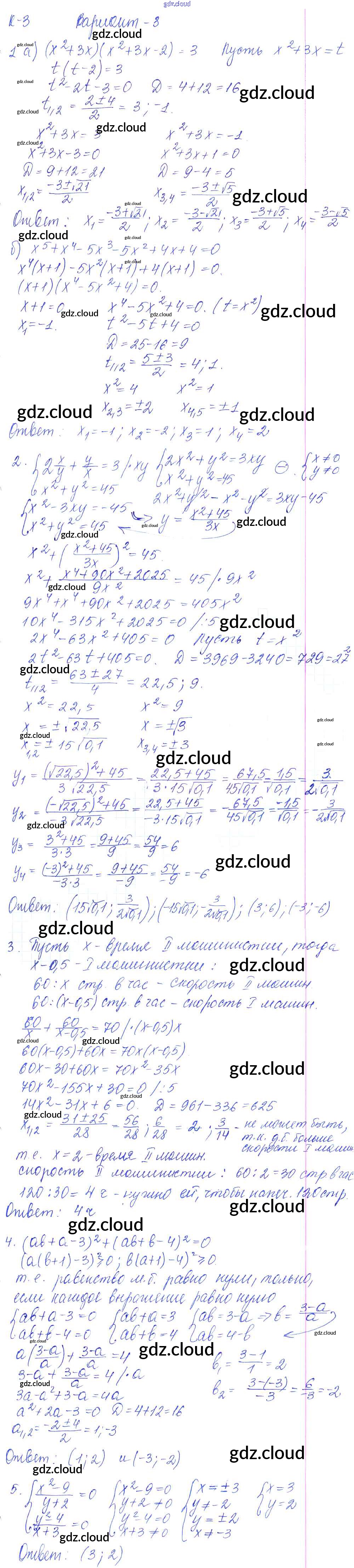 К-3. Целые уравнения и системы уравнений Ответы к Контрольным работам по Алгебре 9 класс Контрольные и самостоятельные работы Журавлев УМК Экзамен