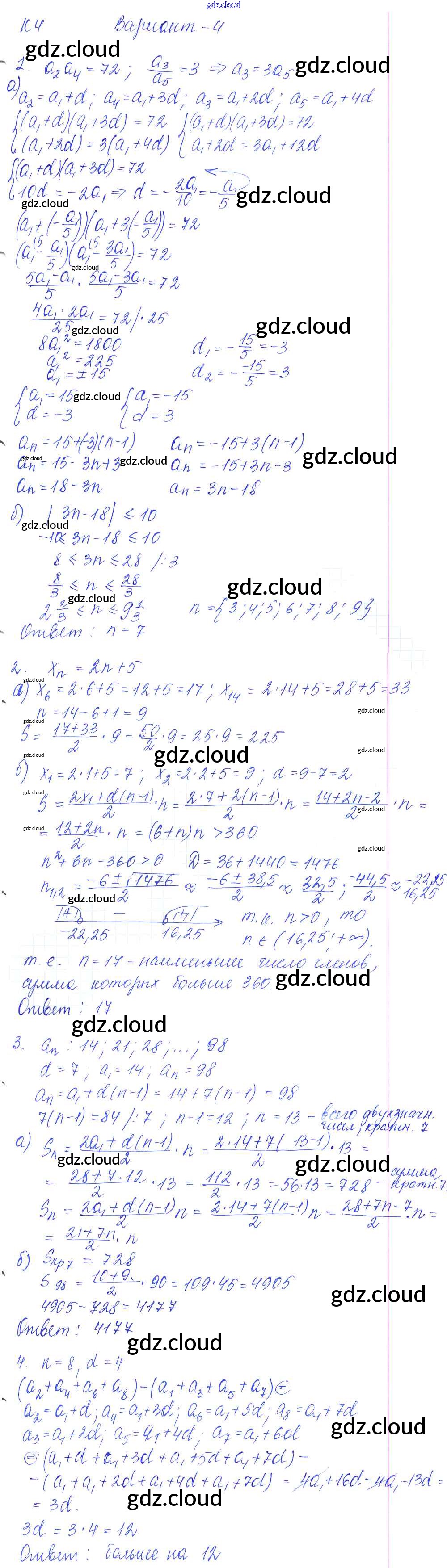 К-4. Арифметическая прогрессия Ответы к Контрольным работам по Алгебре 9 класс Контрольные и самостоятельные работы Журавлев УМК Экзамен