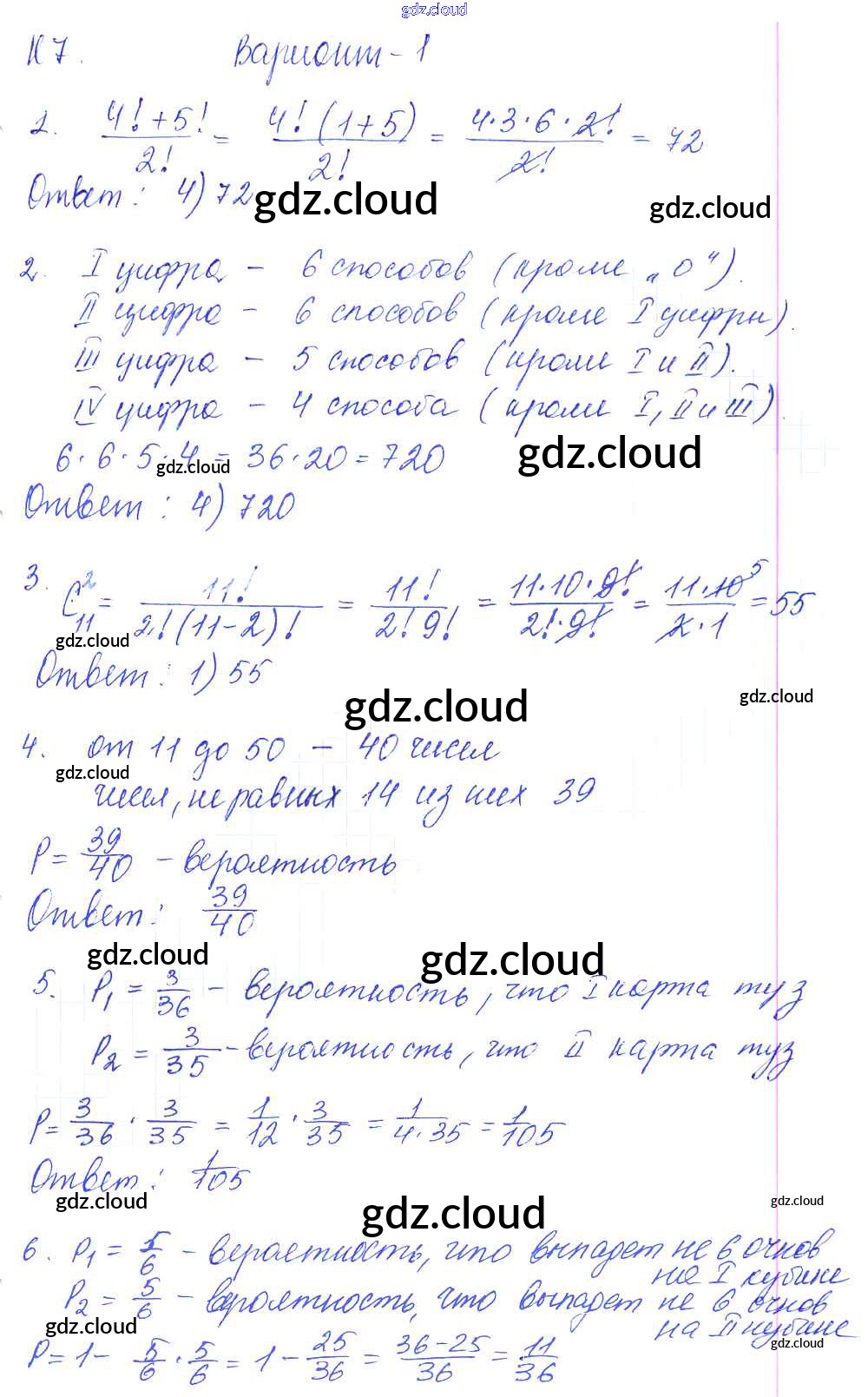 К-7. Элементы комбинаторики и теории вероятностей Ответы к Контрольным работам по Алгебре 9 класс Контрольные и самостоятельные работы Журавлев УМК Экзамен
