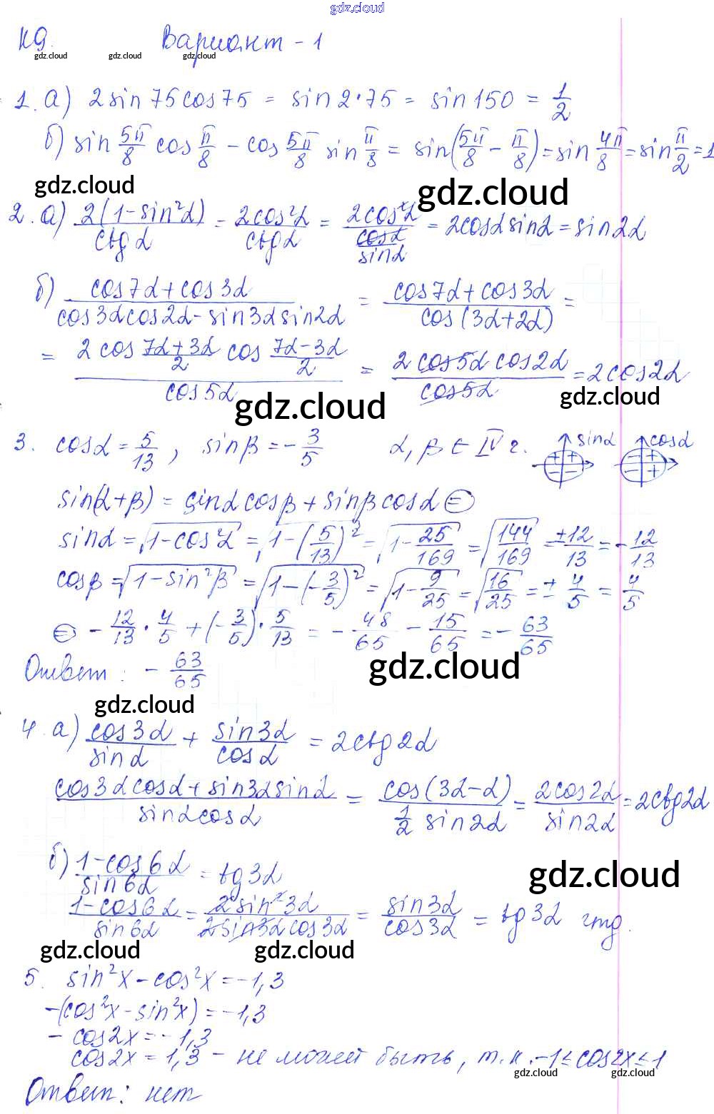 К-9. Формулы сложения и их следствия Ответы к Контрольным работам по Алгебре 9 класс Контрольные и самостоятельные работы Журавлев УМК Экзамен