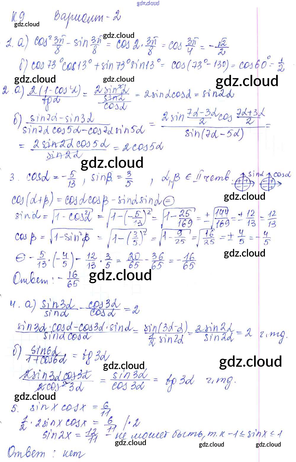 К-9. Формулы сложения и их следствия Ответы к Контрольным работам по Алгебре 9 класс Контрольные и самостоятельные работы Журавлев УМК Экзамен