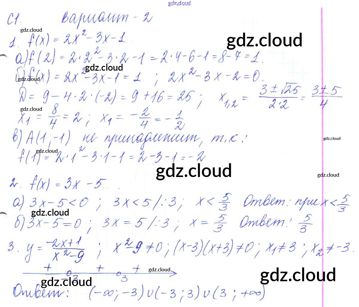 С-1. Функции и их свойства Ответы к Самостоятельным работам по Алгебре 9 класс Контрольные и самостоятельные работы Журавлев УМК Экзамен