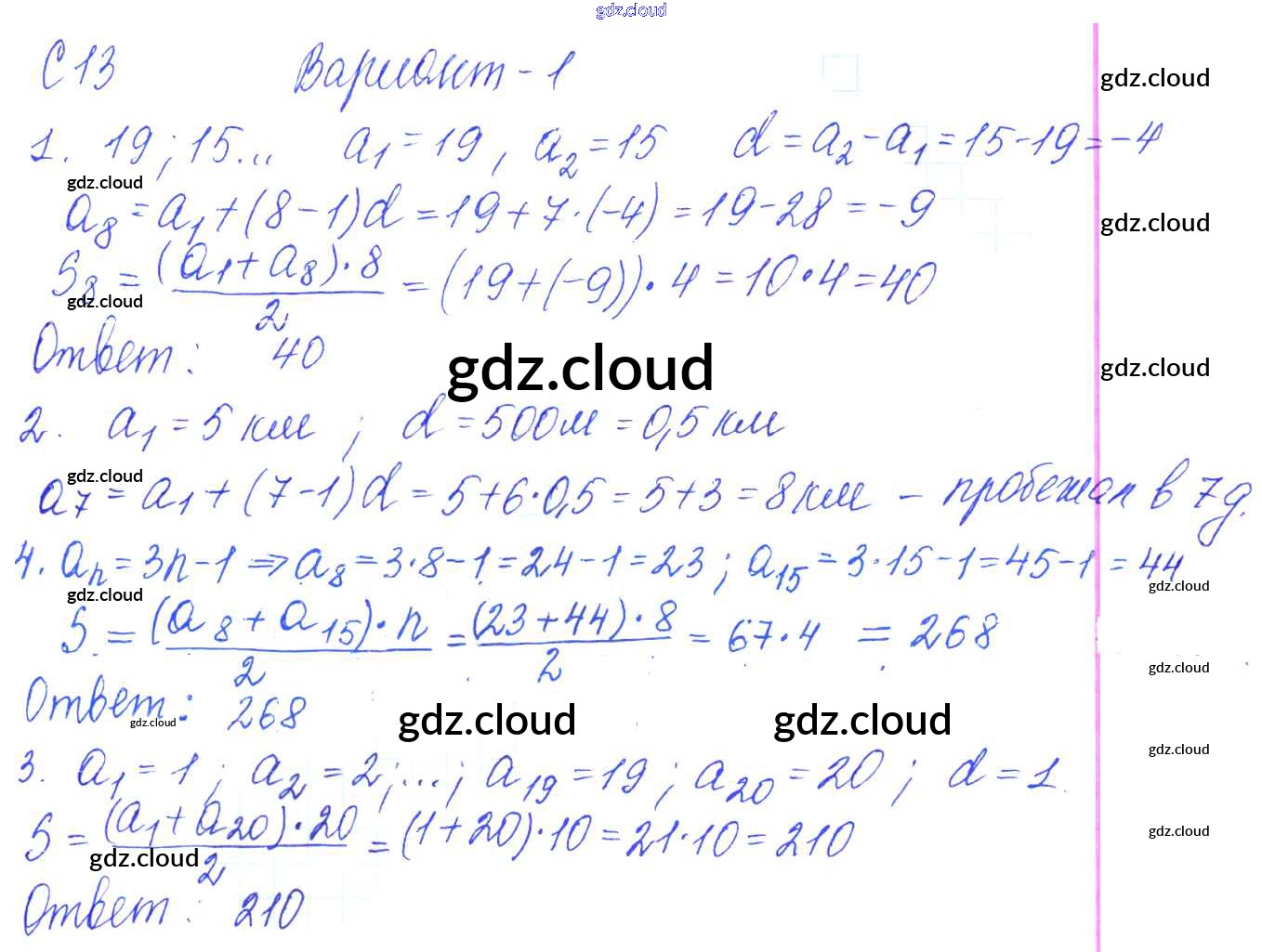 С-13. Формула суммы n первых членов арифметической прогрессии Ответы к Самостоятельным работам по Алгебре 9 класс Контрольные и самостоятельные работы Журавлев УМК Экзамен