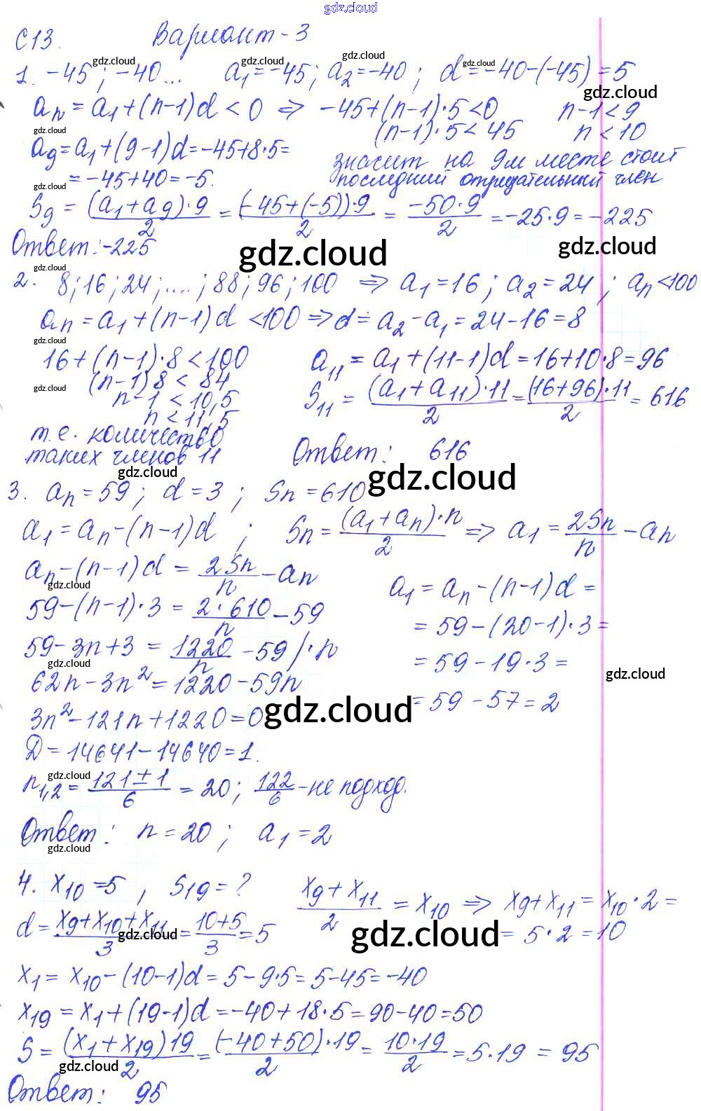 С-13. Формула суммы n первых членов арифметической прогрессии Ответы к Самостоятельным работам по Алгебре 9 класс Контрольные и самостоятельные работы Журавлев УМК Экзамен
