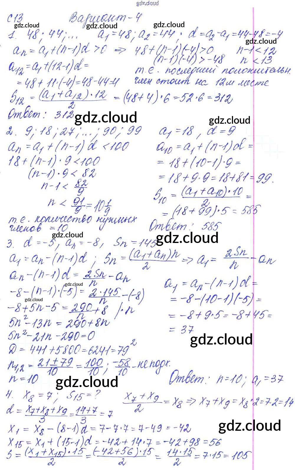 С-13. Формула суммы n первых членов арифметической прогрессии Ответы к Самостоятельным работам по Алгебре 9 класс Контрольные и самостоятельные работы Журавлев УМК Экзамен