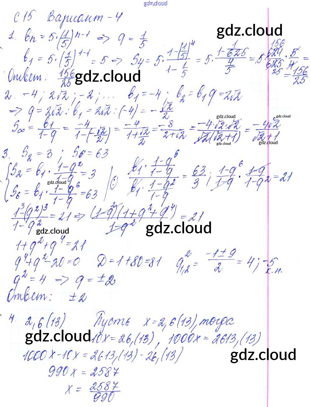 С-15. Формула суммы первых n членов геометрической прогрессии Ответы к Самостоятельным работам по Алгебре 9 класс Контрольные и самостоятельные работы Журавлев УМК Экзамен