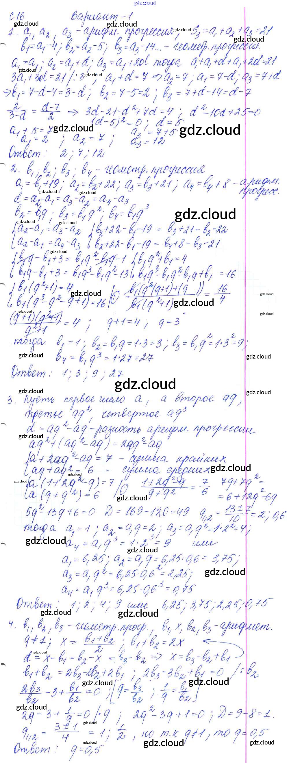 С-16. Комбинированные задачи на прогрессии Ответы к Самостоятельным работам по Алгебре 9 класс Контрольные и самостоятельные работы Журавлев УМК Экзамен
