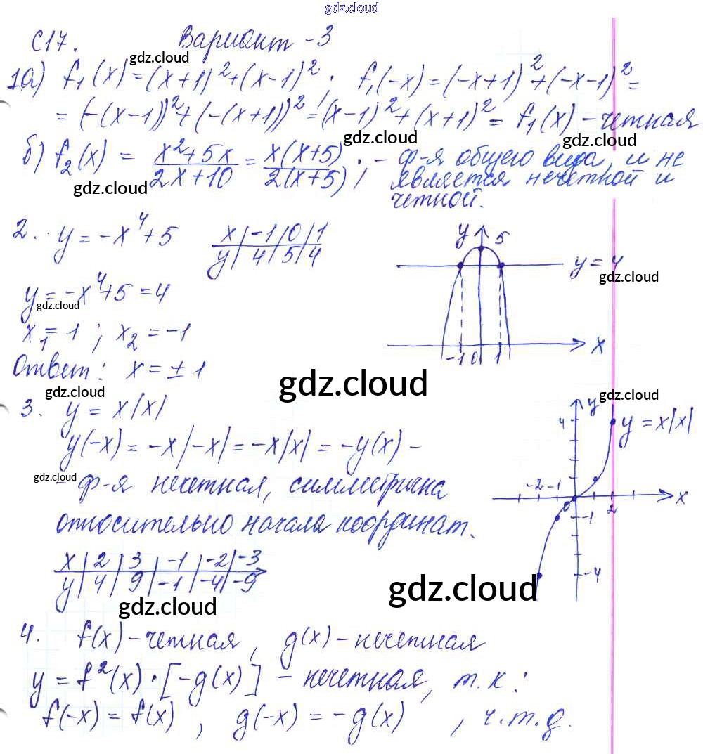 С-17. Четные и нечетные функции. Функция у = хn Ответы к Самостоятельным работам по Алгебре 9 класс Контрольные и самостоятельные работы Журавлев УМК Экзамен