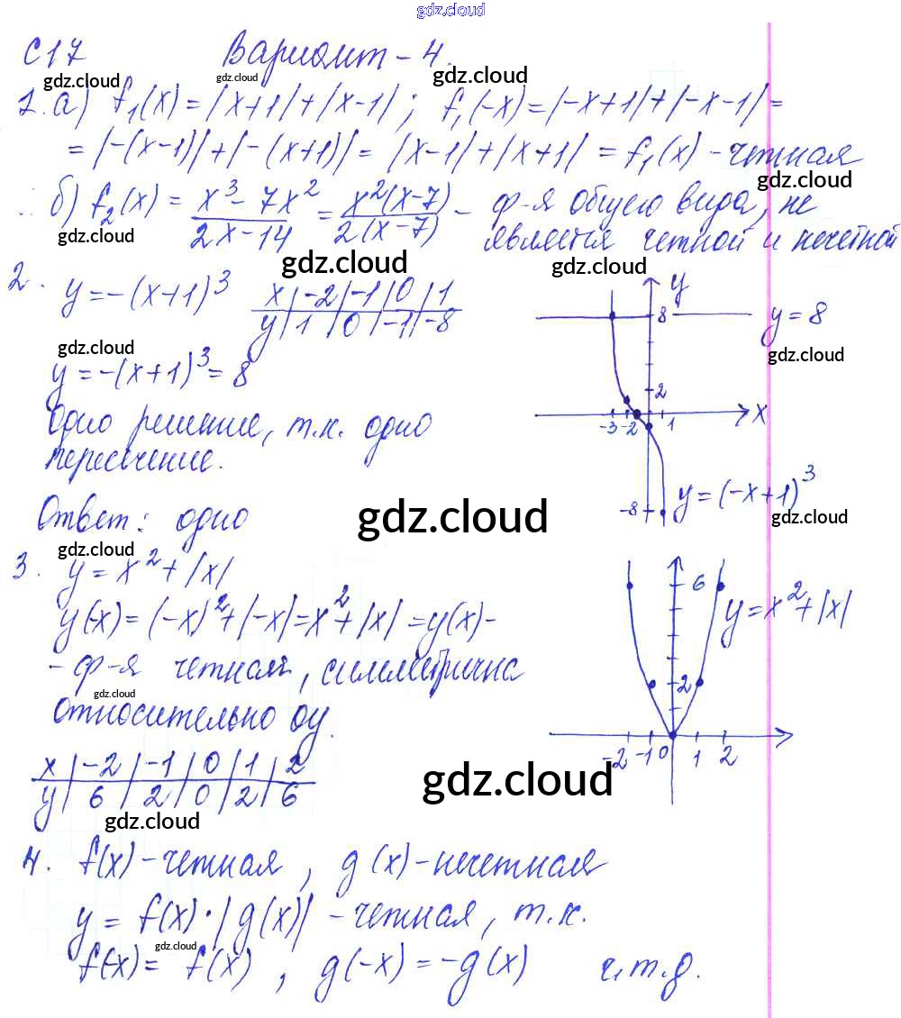 С-17. Четные и нечетные функции. Функция у = хn Ответы к Самостоятельным работам по Алгебре 9 класс Контрольные и самостоятельные работы Журавлев УМК Экзамен
