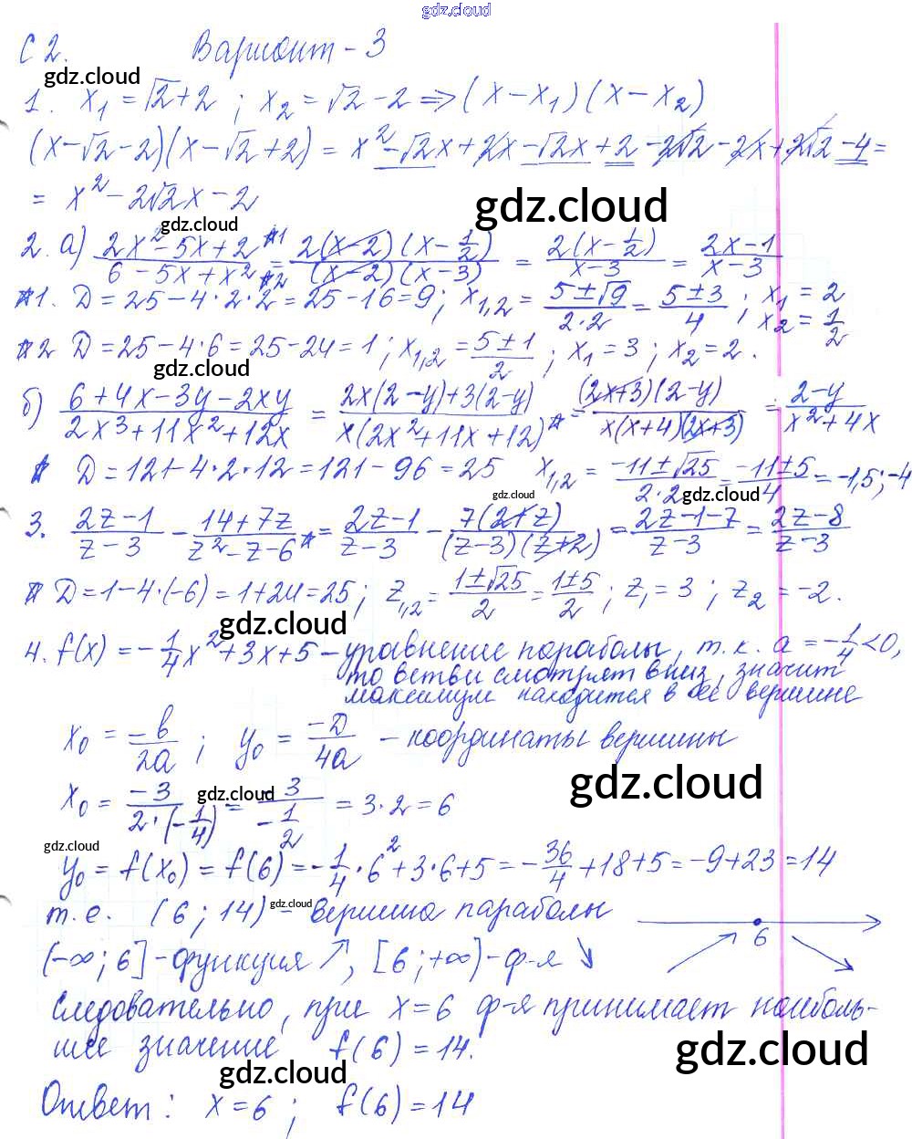 С-2. Квадратный трехчлен Ответы к Самостоятельным работам по Алгебре 9 класс Контрольные и самостоятельные работы Журавлев УМК Экзамен