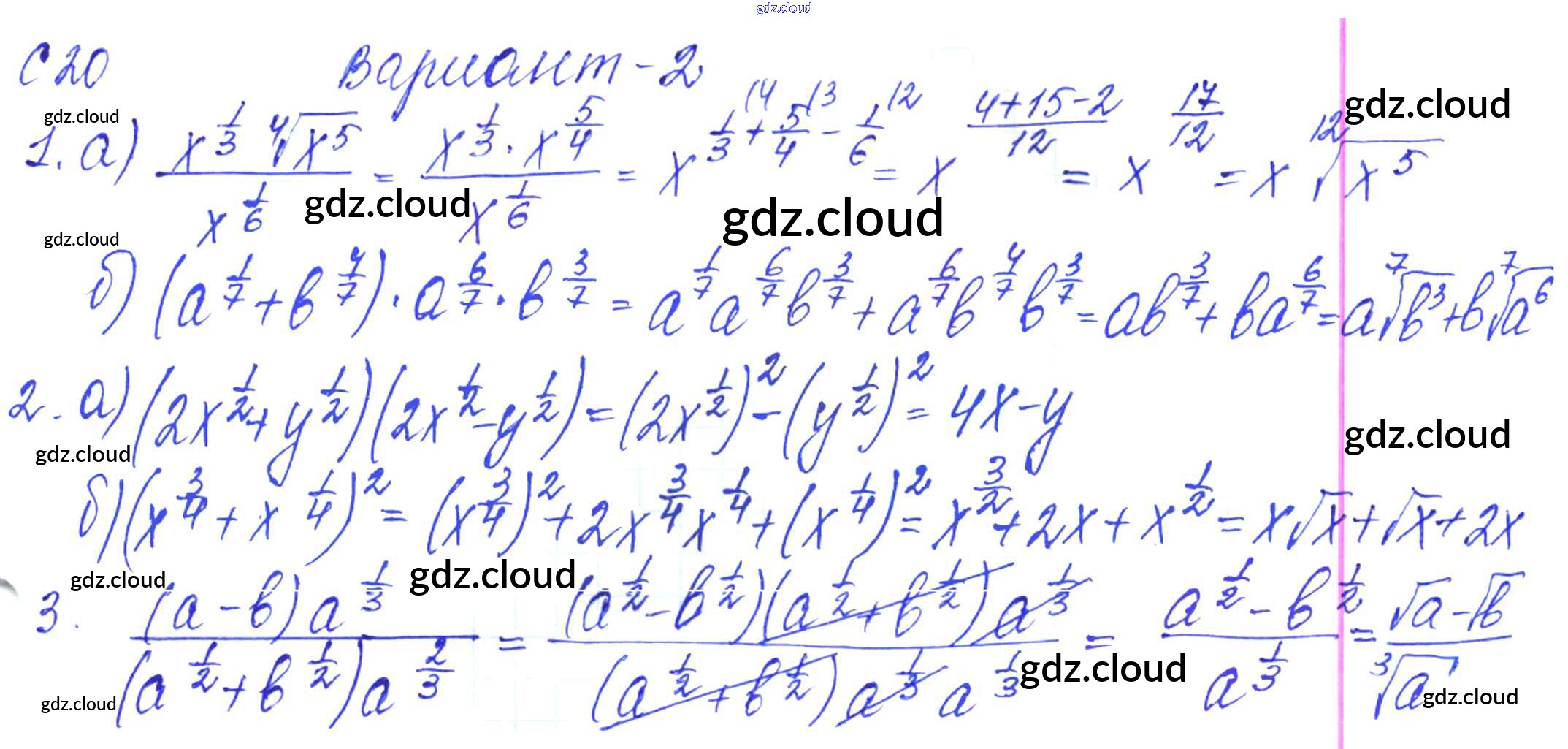 С-20. Преобразование степенных выражений с рациональными показателями Ответы к Самостоятельным работам по Алгебре 9 класс Контрольные и самостоятельные работы Журавлев УМК Экзамен