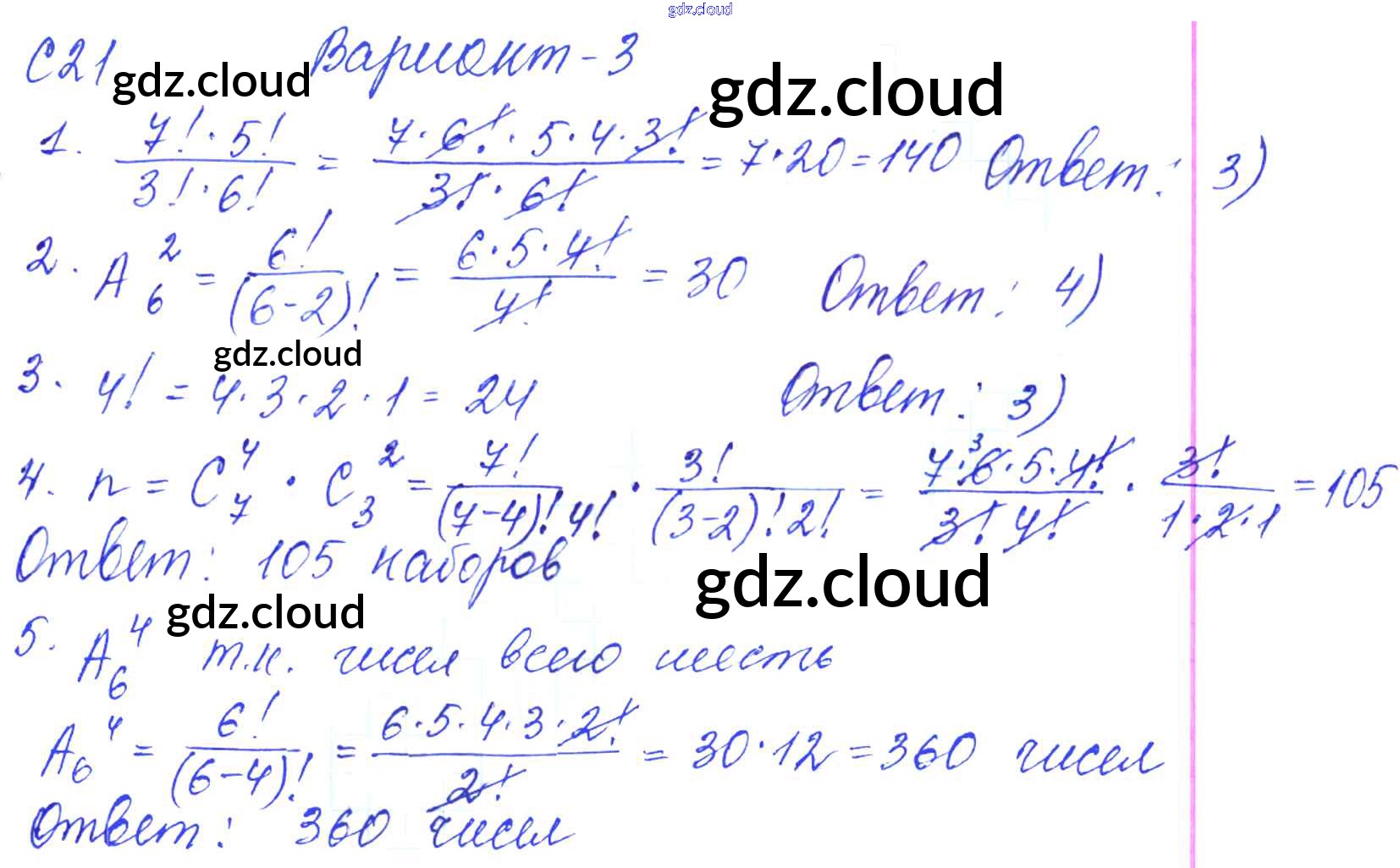 С-21. Элементы комбинаторики Ответы к Самостоятельным работам по Алгебре 9 класс Контрольные и самостоятельные работы Журавлев УМК Экзамен
