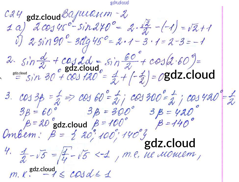 С-24. Определение тригонометрических функций Ответы к Самостоятельным работам по Алгебре 9 класс Контрольные и самостоятельные работы Журавлев УМК Экзамен