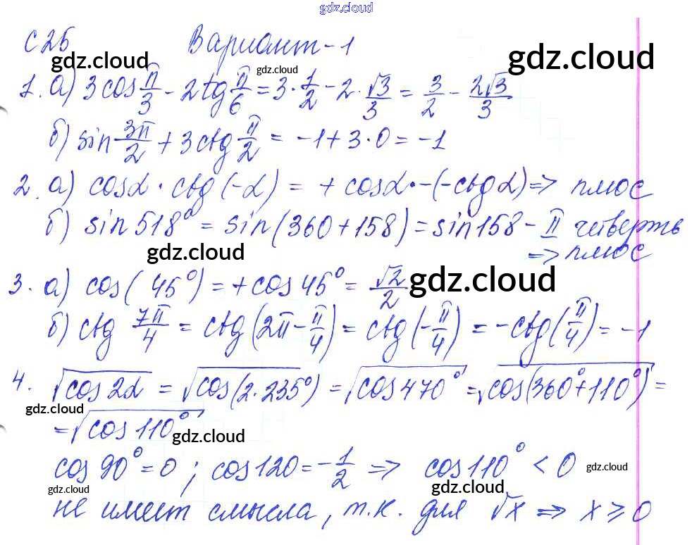 С-25. Свойства тригонометрических функций Ответы к Самостоятельным работам по Алгебре 9 класс Контрольные и самостоятельные работы Журавлев УМК Экзамен