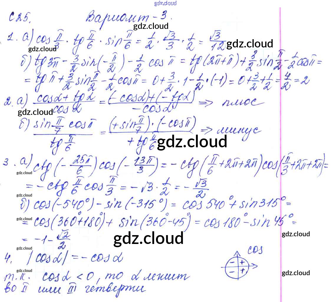 С-25. Свойства тригонометрических функций Ответы к Самостоятельным работам по Алгебре 9 класс Контрольные и самостоятельные работы Журавлев УМК Экзамен