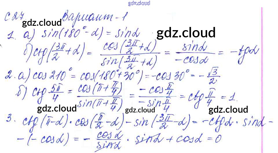 С-27. Формулы приведения Ответы к Самостоятельным работам по Алгебре 9 класс Контрольные и самостоятельные работы Журавлев УМК Экзамен