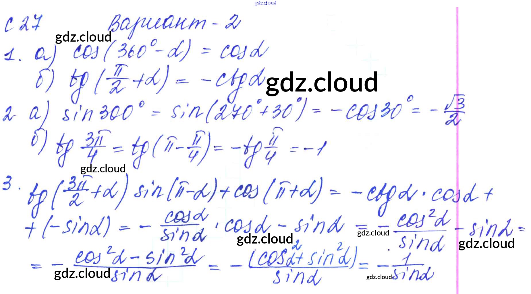 С-27. Формулы приведения Ответы к Самостоятельным работам по Алгебре 9 класс Контрольные и самостоятельные работы Журавлев УМК Экзамен