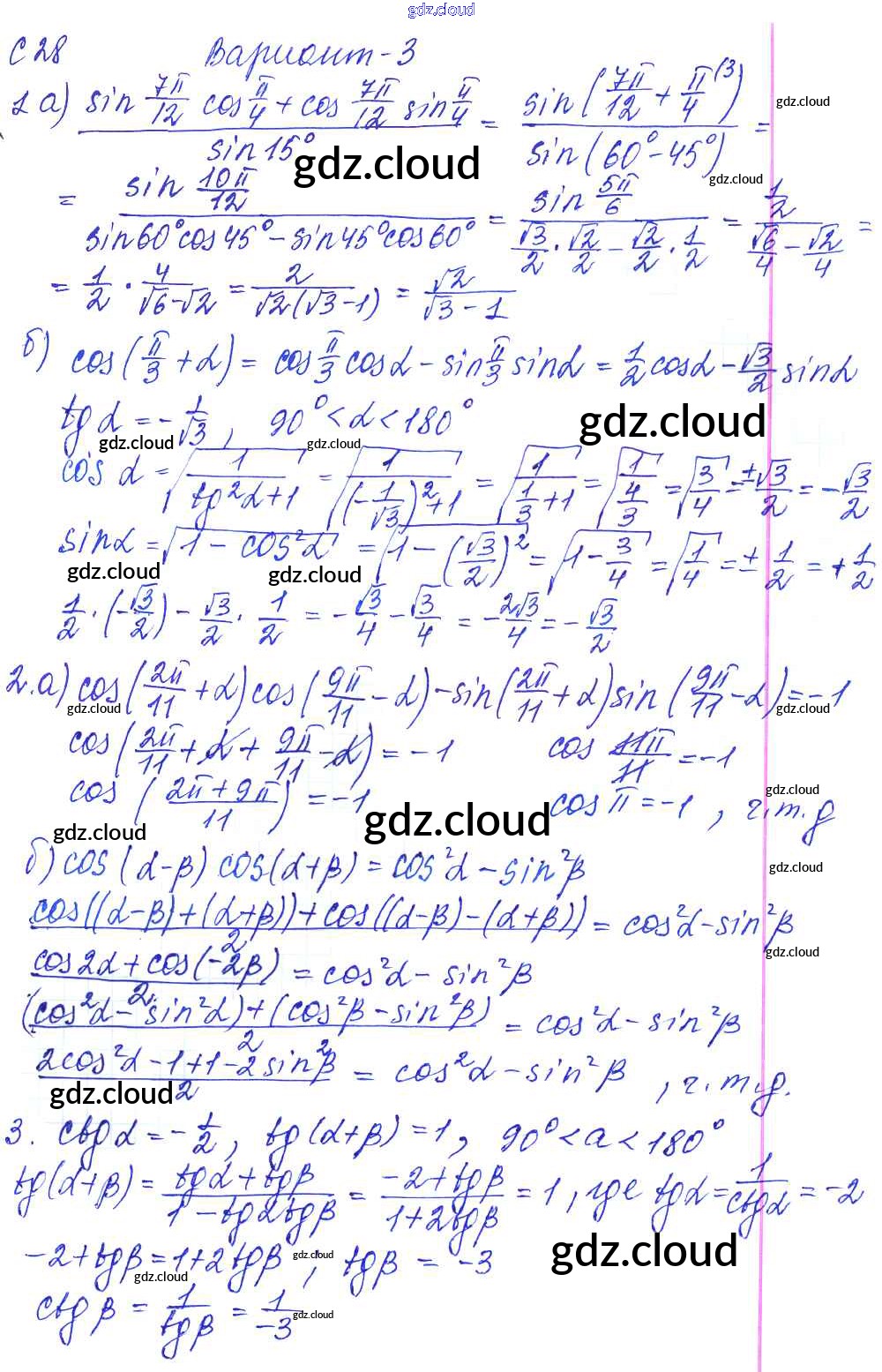 С-28. Формулы сложения Ответы к Самостоятельным работам по Алгебре 9 класс Контрольные и самостоятельные работы Журавлев УМК Экзамен