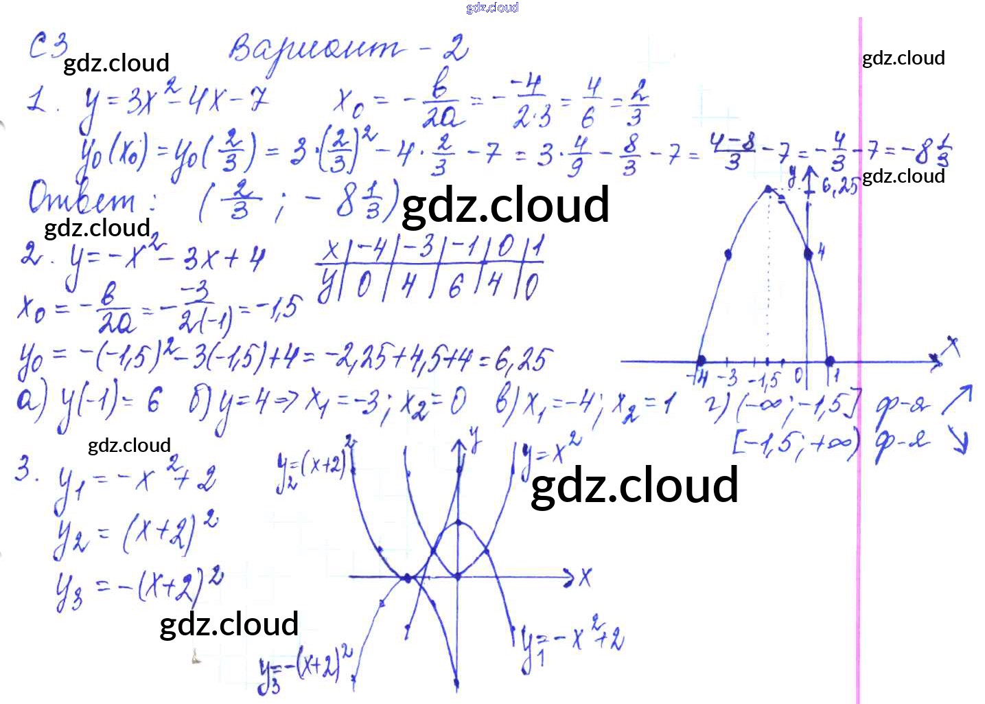 С-3. График квадратичной функции Ответы к Самостоятельным работам по Алгебре 9 класс Контрольные и самостоятельные работы Журавлев УМК Экзамен