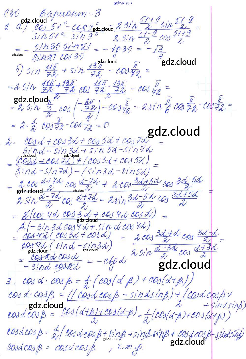 С-30. Формулы суммы и разности тригонометрических функций Ответы к Самостоятельным работам по Алгебре 9 класс Контрольные и самостоятельные работы Журавлев УМК Экзамен
