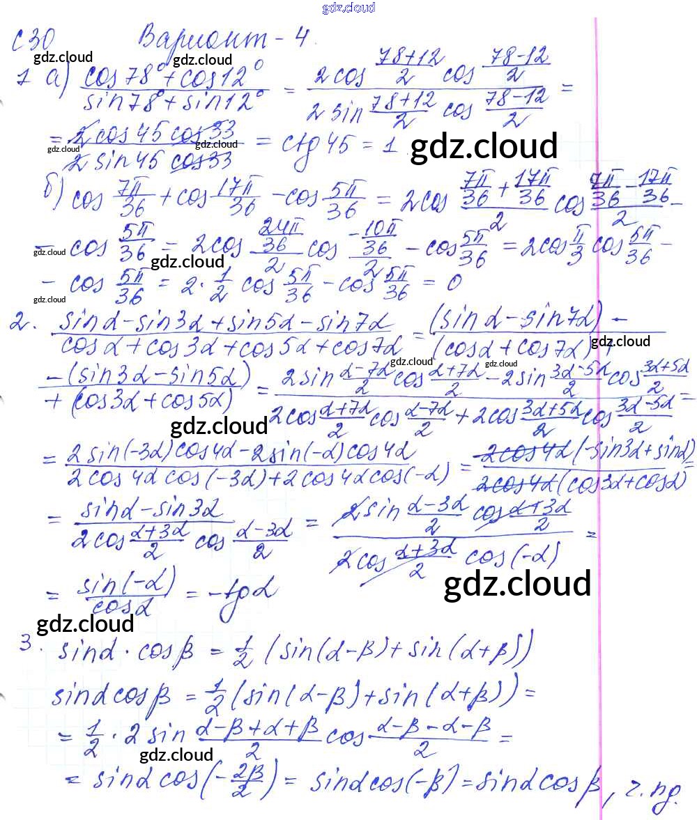 С-30. Формулы суммы и разности тригонометрических функций Ответы к Самостоятельным работам по Алгебре 9 класс Контрольные и самостоятельные работы Журавлев УМК Экзамен