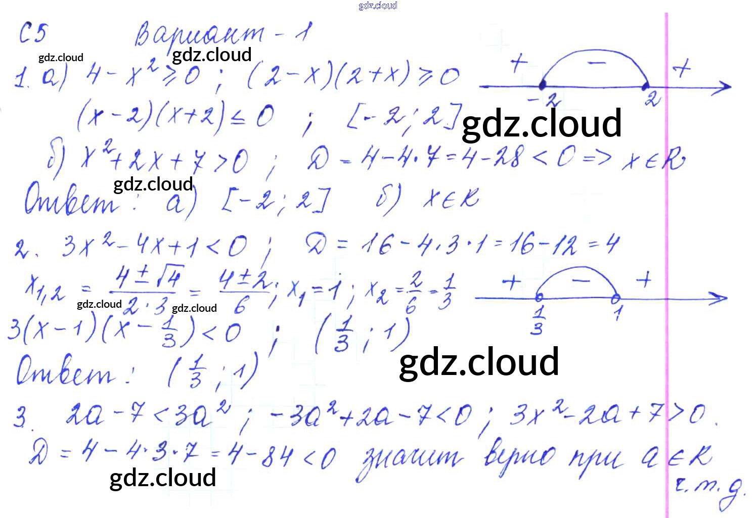 С-5. Решение квадратичных неравенств Ответы к Самостоятельным работам по Алгебре 9 класс Контрольные и самостоятельные работы Журавлев УМК Экзамен