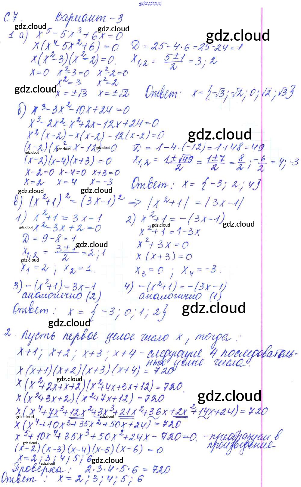 С-7. Решение целых уравнений Ответы к Самостоятельным работам по Алгебре 9 класс Контрольные и самостоятельные работы Журавлев УМК Экзамен