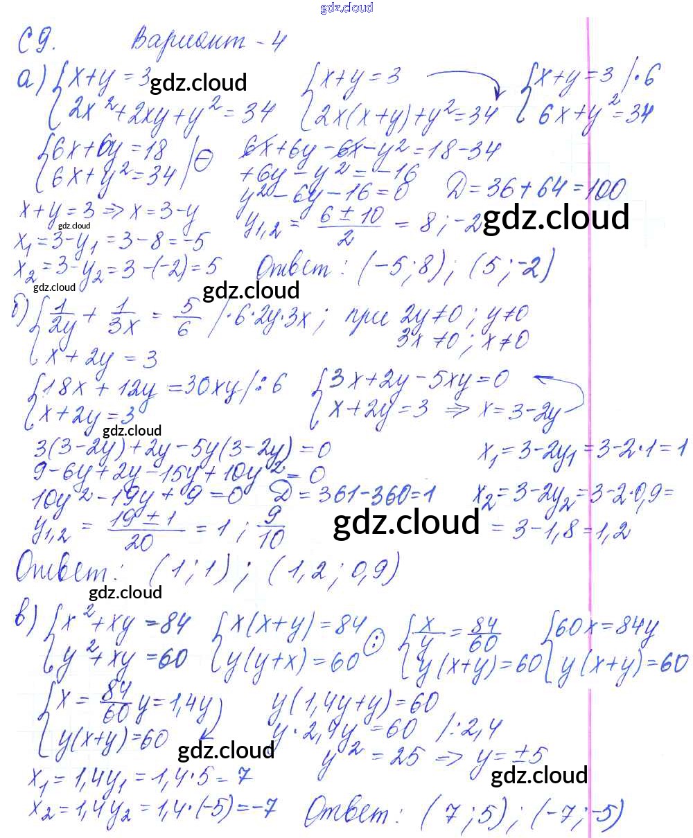 С-9. Решение систем уравнений второй степени Ответы к Самостоятельным работам по Алгебре 9 класс Контрольные и самостоятельные работы Журавлев УМК Экзамен