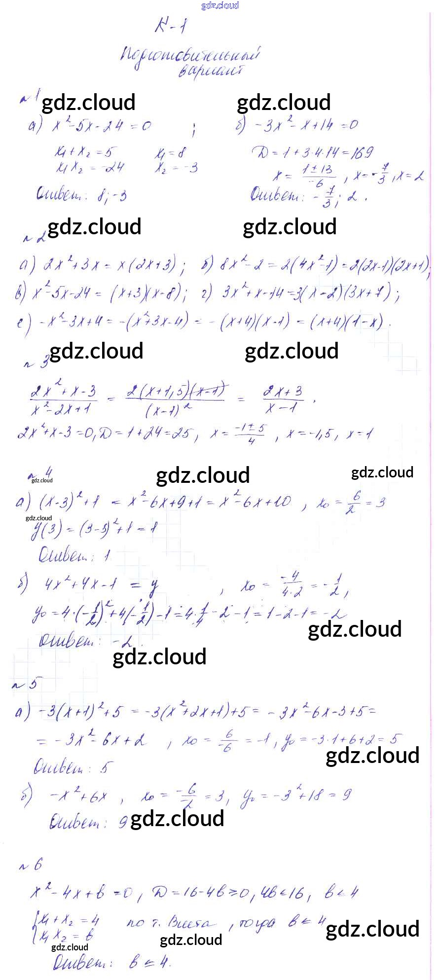 КР-1 Ответы к Контрольным работам по Алгебре 9 класс Дидактические материалы Звавич УМК Экзамен