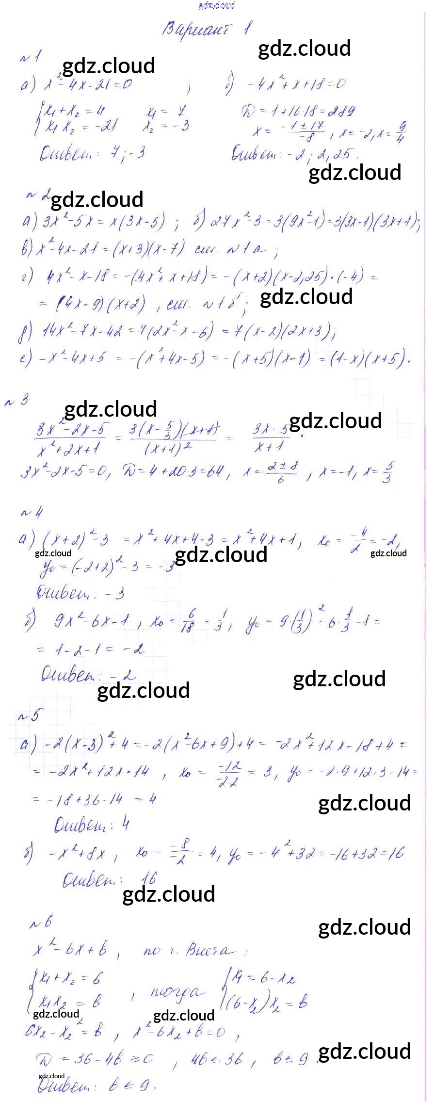 Ответ на задание вариант 1 Дидактические материалы Алгебра за 9 (девятый) класс Звавич, Дьяконова УМК 2017
