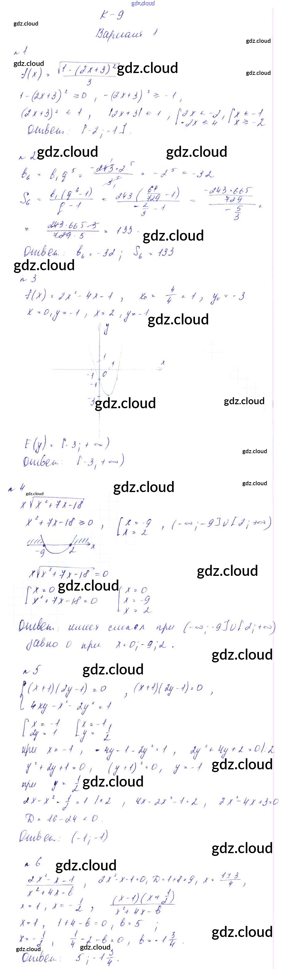 КР-9 Ответы к Контрольным работам по Алгебре 9 класс Дидактические материалы Звавич УМК Экзамен