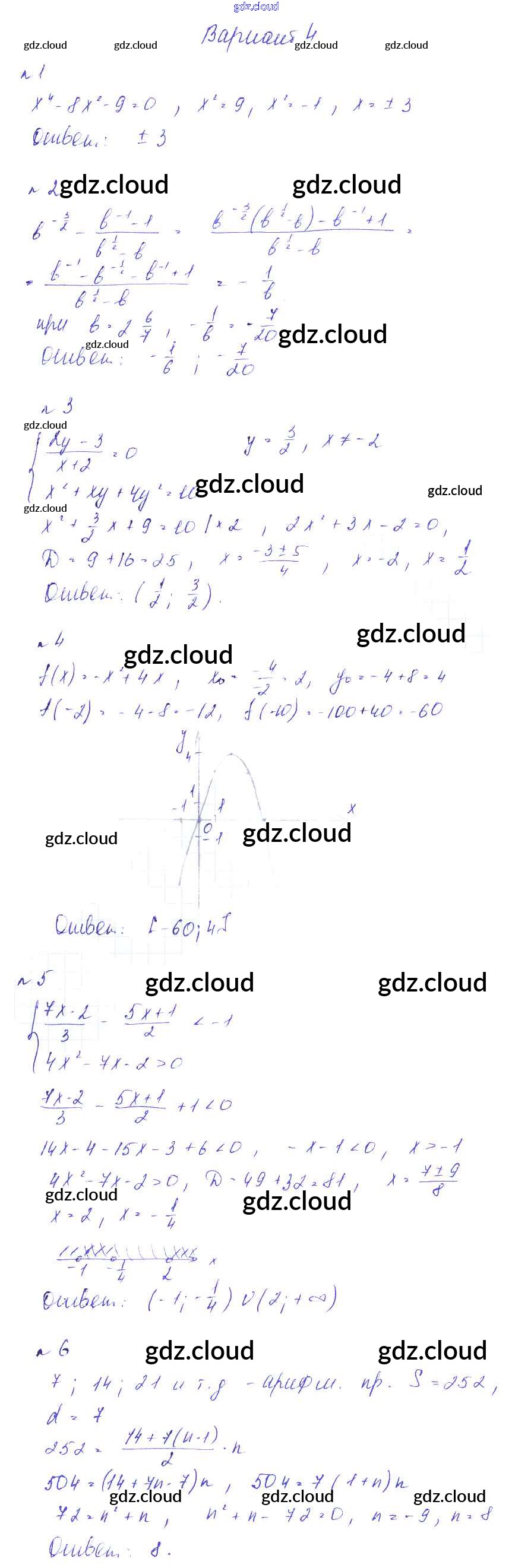 КР-9 Ответы к Контрольным работам по Алгебре 9 класс Дидактические материалы Звавич УМК Экзамен
