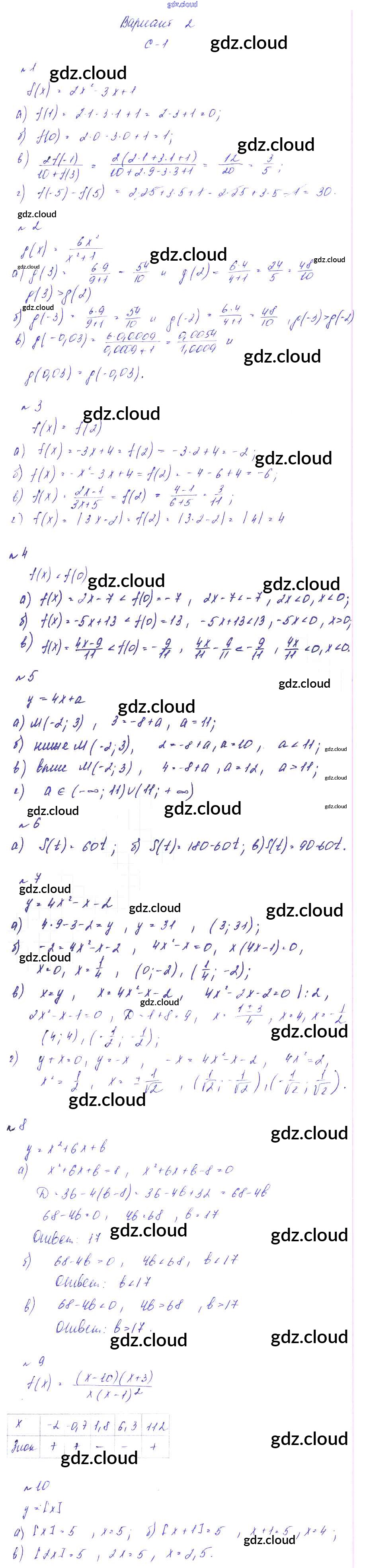 СР-1 Ответы к Самостоятельным работам по Алгебре 9 класс Дидактические материалы Звавич УМК Экзамен