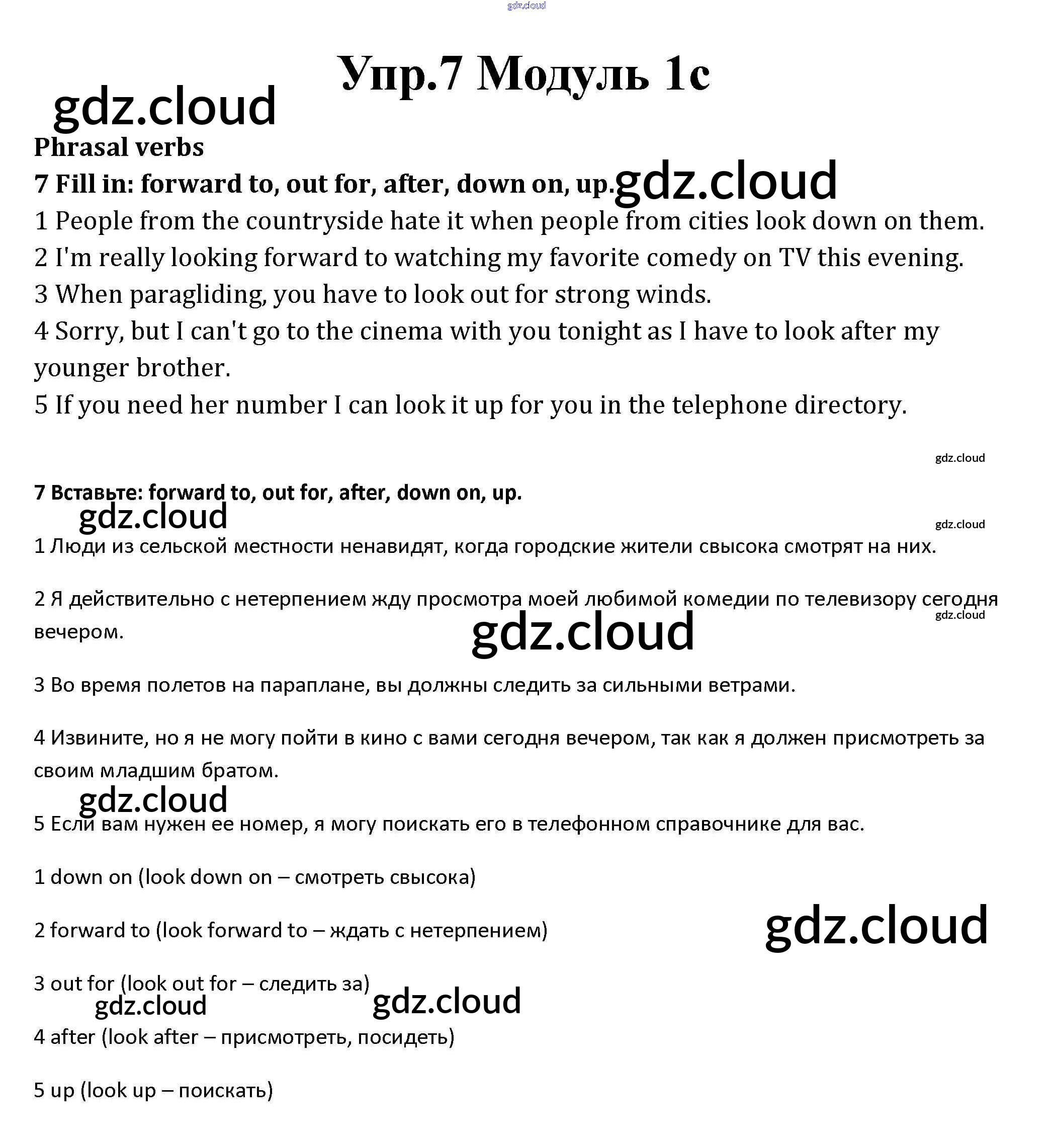 Ответ на задание 7 Рабочая тетрадь Английский язык за 10 (десятый) класс Афанасьева, Дули, Михеева, Оби, Эванс Spotlight Базовый уровень 2015