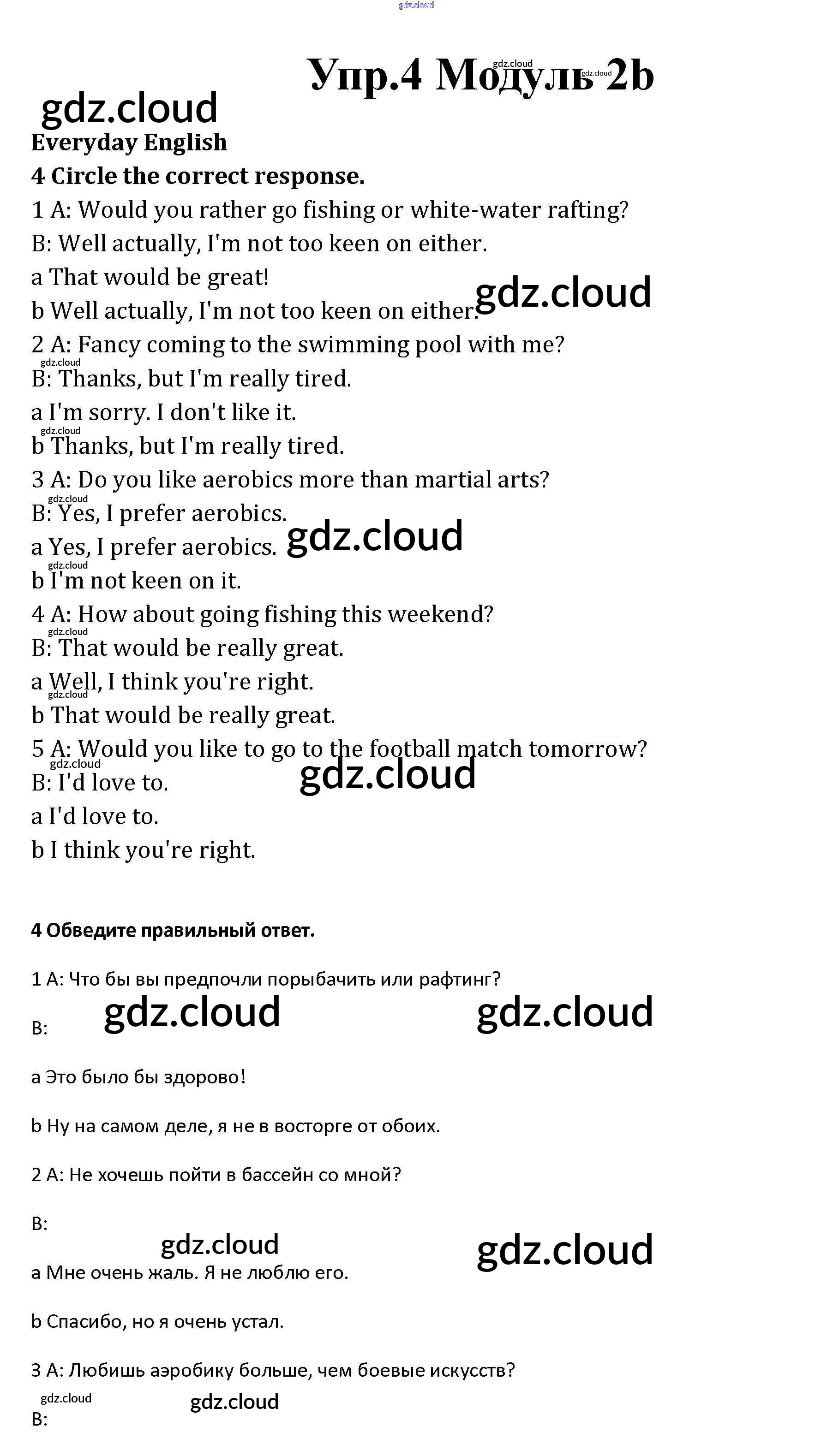 Ответ на задание 4 Рабочая тетрадь Английский язык за 10 (десятый) класс Афанасьева, Дули, Михеева, Оби, Эванс Spotlight Базовый уровень 2015