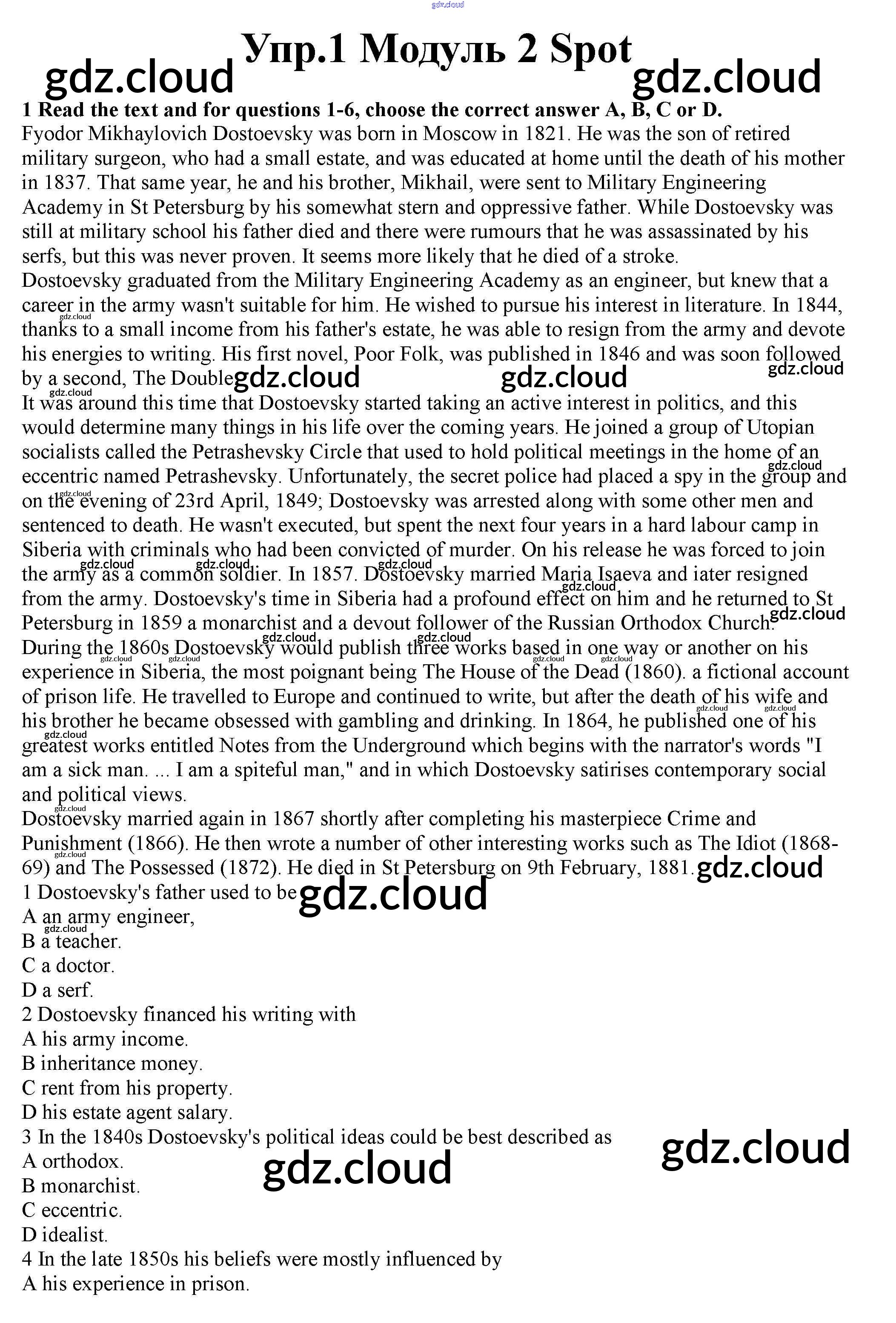 Ответ на задание 1 Рабочая тетрадь Английский язык за 10 (десятый) класс Афанасьева, Дули, Михеева, Оби, Эванс Spotlight Базовый уровень 2015
