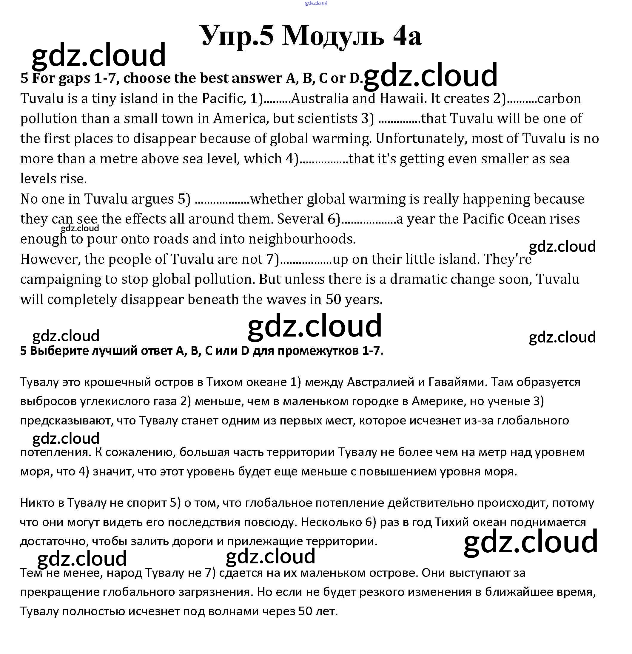 Ответ на задание 5 Рабочая тетрадь Английский язык за 10 (десятый) класс Афанасьева, Дули, Михеева, Оби, Эванс Spotlight Базовый уровень 2015