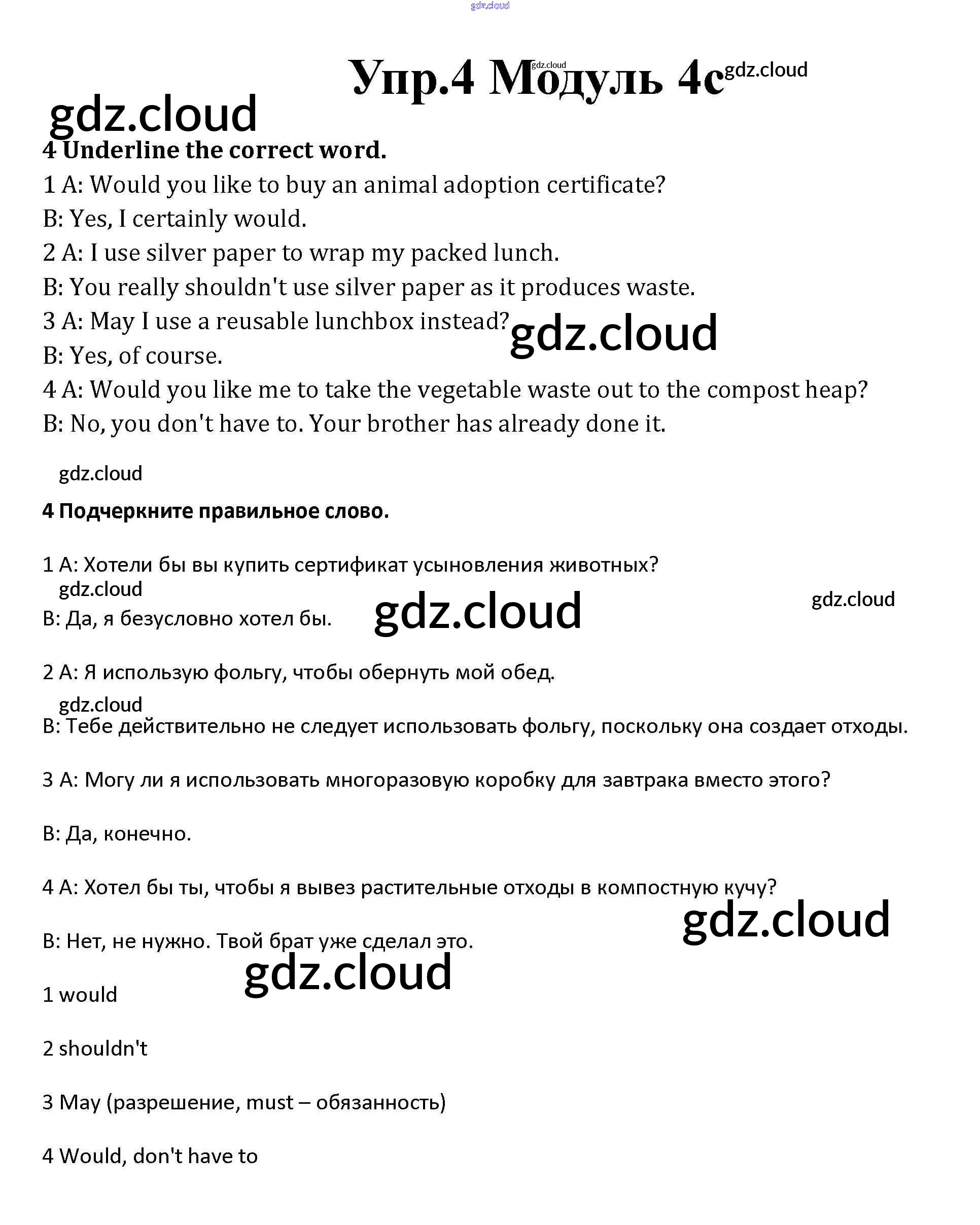 Часть 4c Ответы к Module 4 по Английскому языку 10 класс Рабочая тетрадь Афанасьева Spotlight Базовый уровень Просвещение