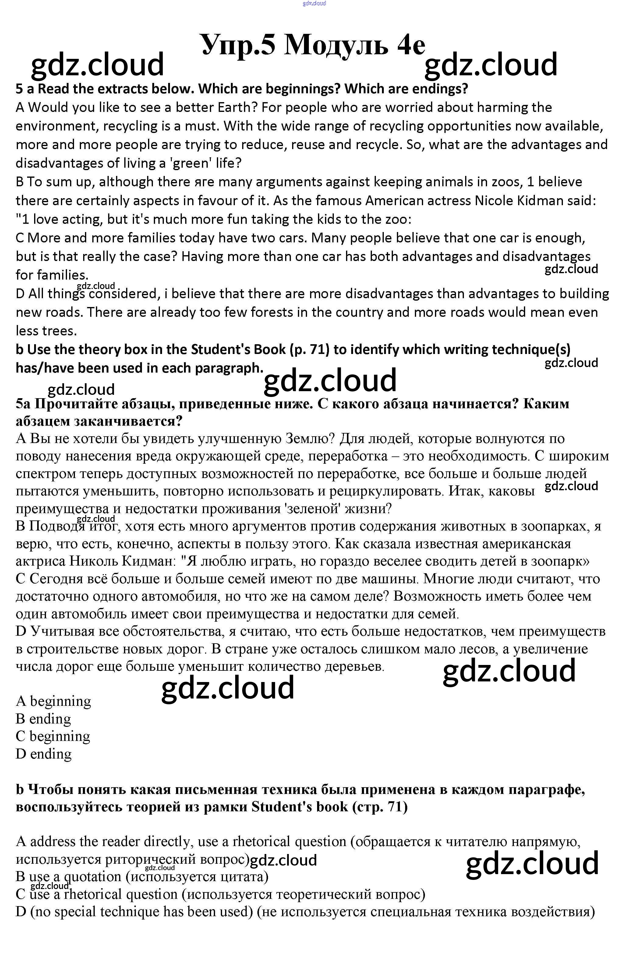 Ответ на задание 5 Рабочая тетрадь Английский язык за 10 (десятый) класс Афанасьева, Дули, Михеева, Оби, Эванс Spotlight Базовый уровень 2015