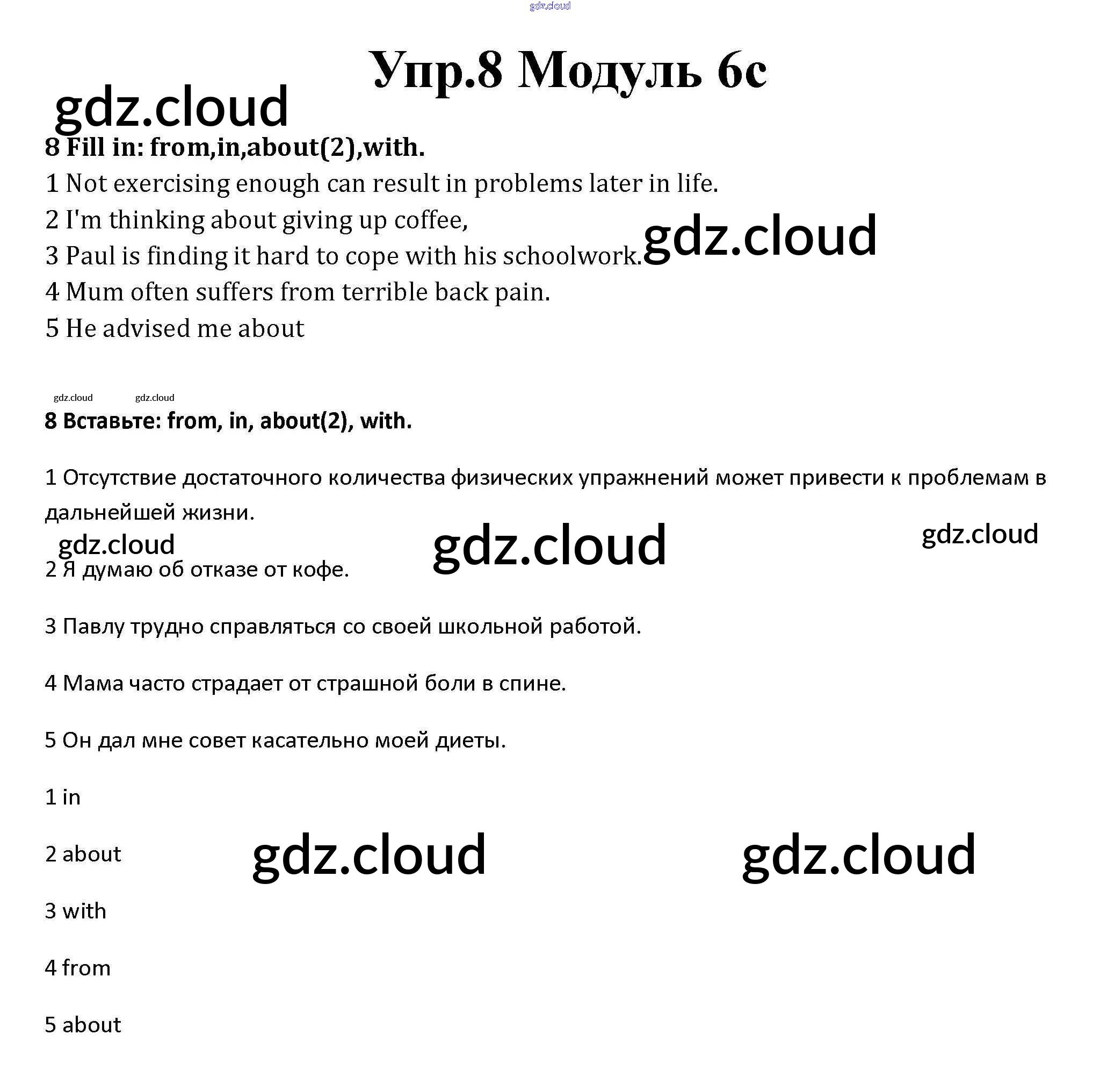 Ответ на задание 8 Рабочая тетрадь Английский язык за 10 (десятый) класс Афанасьева, Дули, Михеева, Оби, Эванс Spotlight Базовый уровень 2015