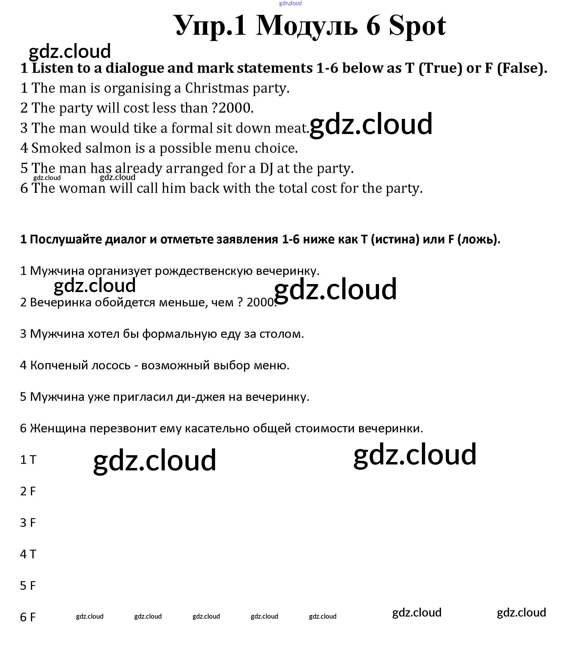Ответ на задание 1 Рабочая тетрадь Английский язык за 10 (десятый) класс Афанасьева, Дули, Михеева, Оби, Эванс Spotlight Базовый уровень 2015