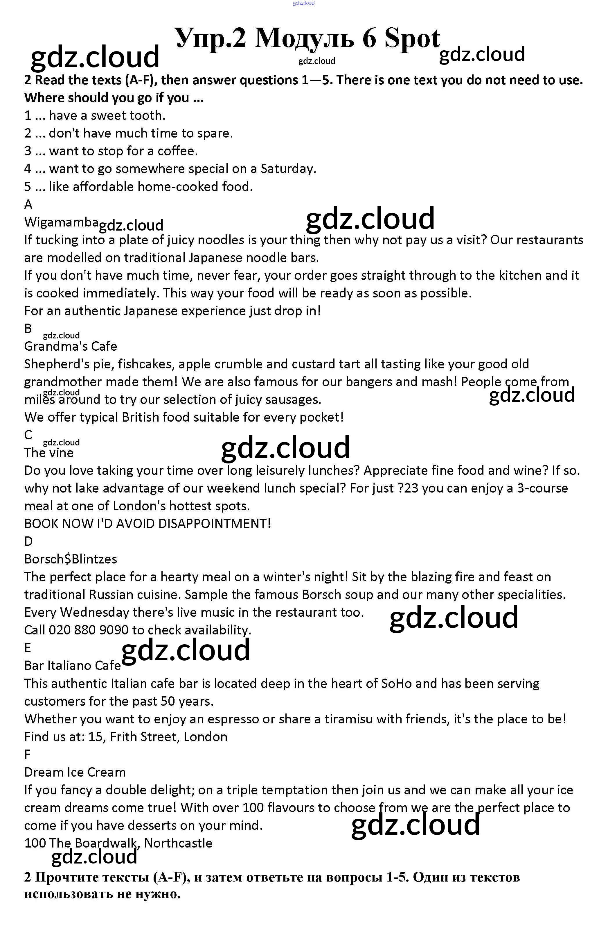 Ответ на задание 2 Рабочая тетрадь Английский язык за 10 (десятый) класс Афанасьева, Дули, Михеева, Оби, Эванс Spotlight Базовый уровень 2015