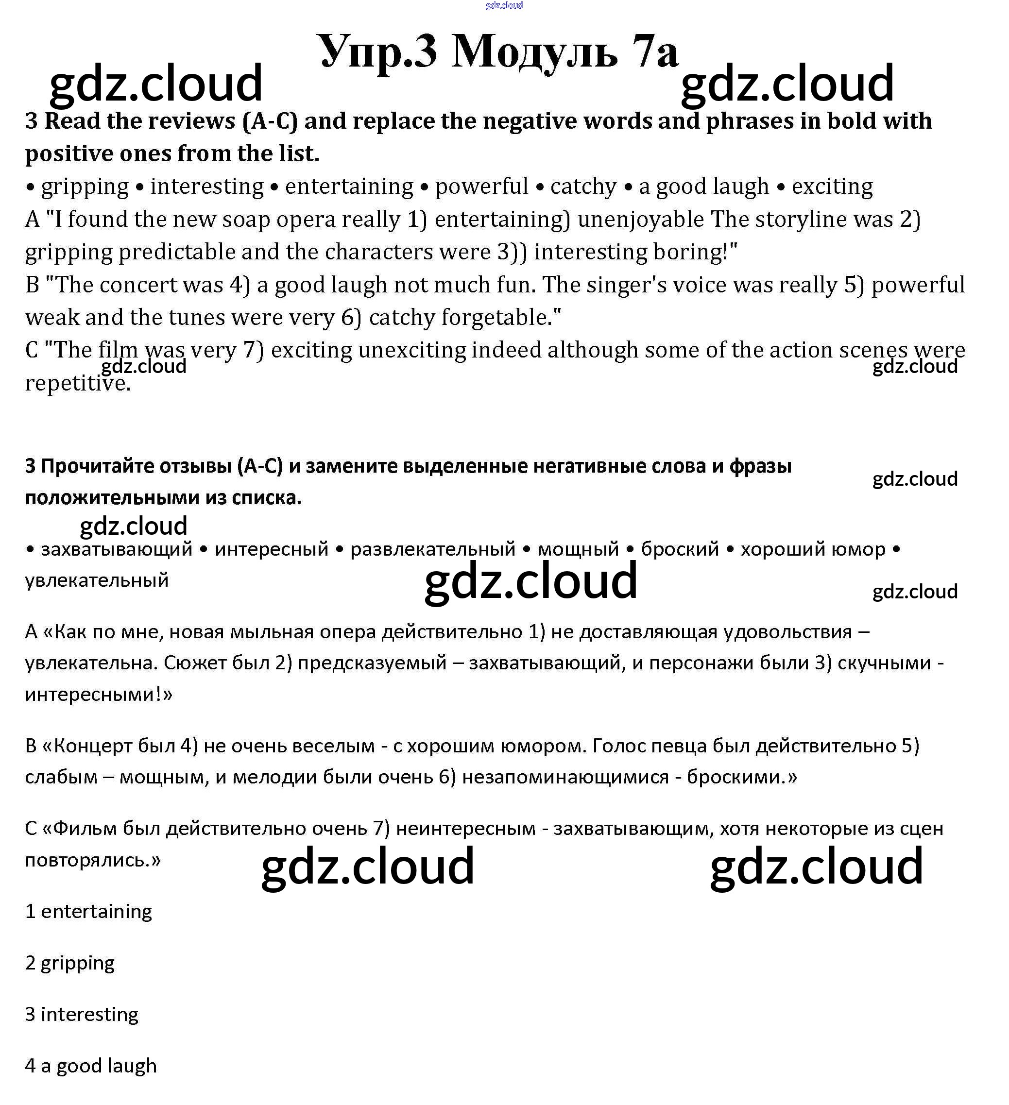 Ответ на задание 3 Рабочая тетрадь Английский язык за 10 (десятый) класс Афанасьева, Дули, Михеева, Оби, Эванс Spotlight Базовый уровень 2015