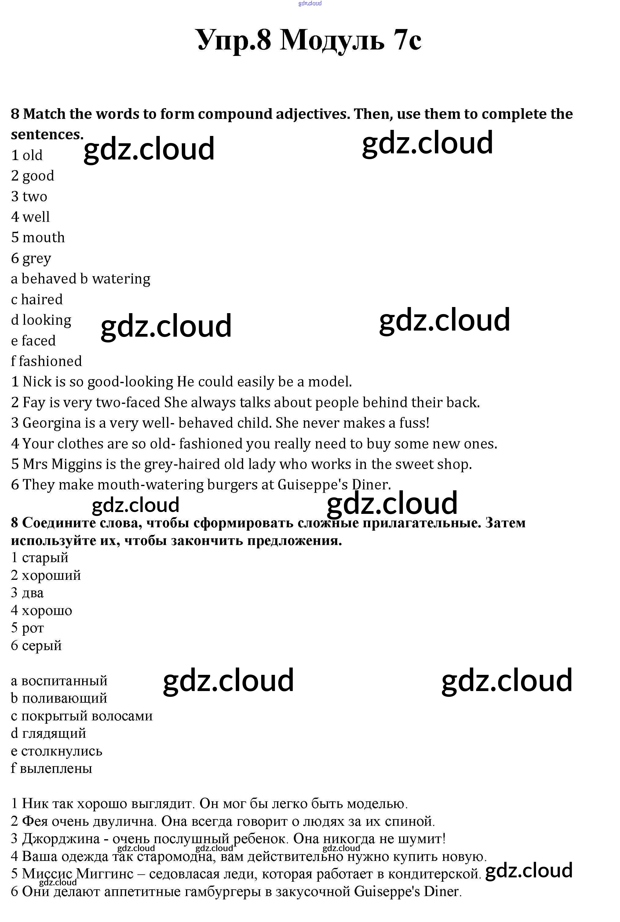 Ответ на задание 8 Рабочая тетрадь Английский язык за 10 (десятый) класс Афанасьева, Дули, Михеева, Оби, Эванс Spotlight Базовый уровень 2015