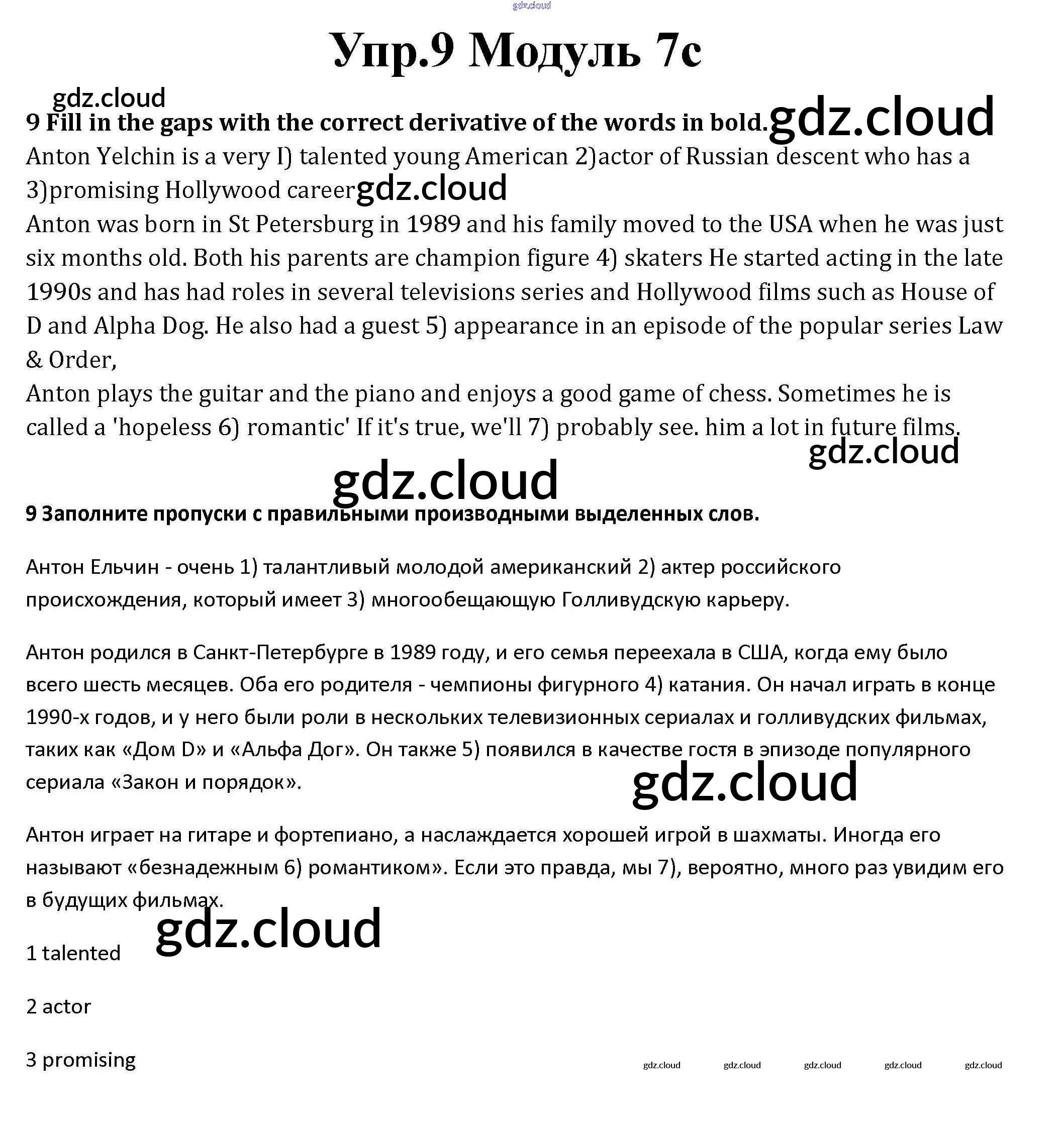 Ответ на задание 9 Рабочая тетрадь Английский язык за 10 (десятый) класс Афанасьева, Дули, Михеева, Оби, Эванс Spotlight Базовый уровень 2015