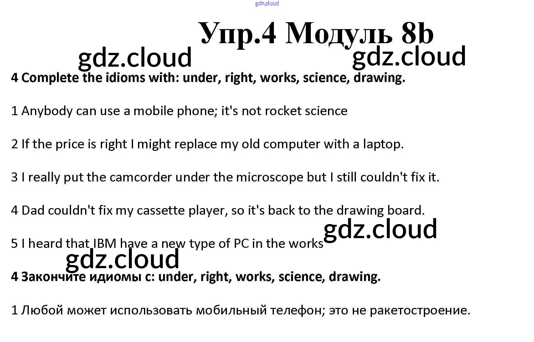 Ответ на задание 4 Рабочая тетрадь Английский язык за 10 (десятый) класс Афанасьева, Дули, Михеева, Оби, Эванс Spotlight Базовый уровень 2015