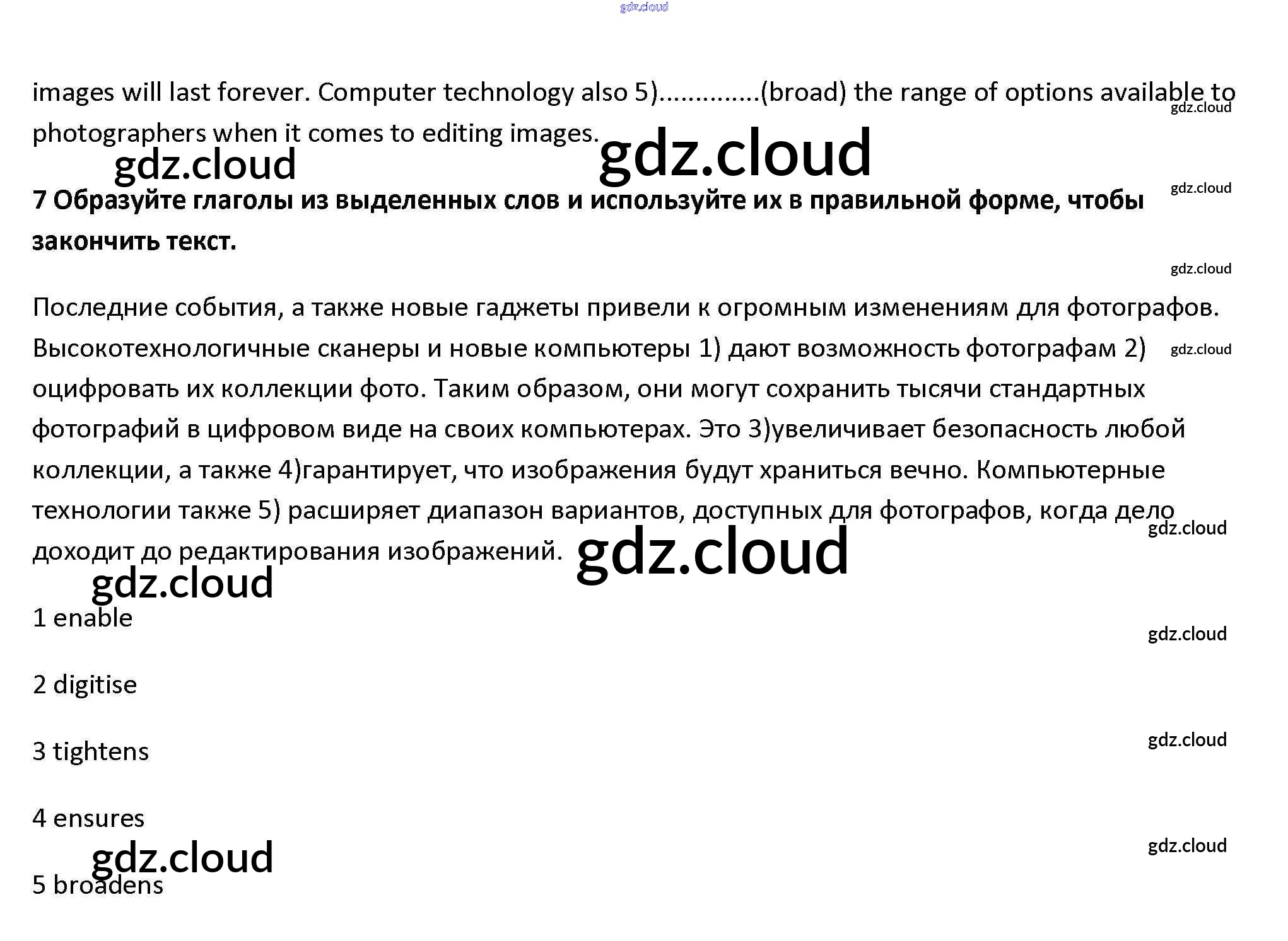 Ответ на задание 7 Рабочая тетрадь Английский язык за 10 (десятый) класс Афанасьева, Дули, Михеева, Оби, Эванс Spotlight Базовый уровень 2015