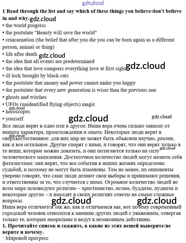 Ответ на задание 1 Учебник Английский язык за 10 (десятый) класс Афанасьева, Михеева Углубленный уровень 2014